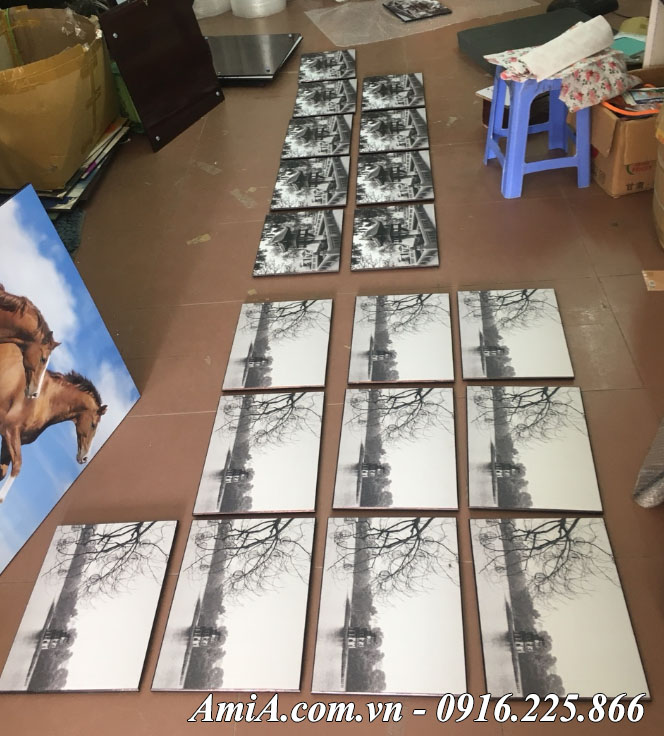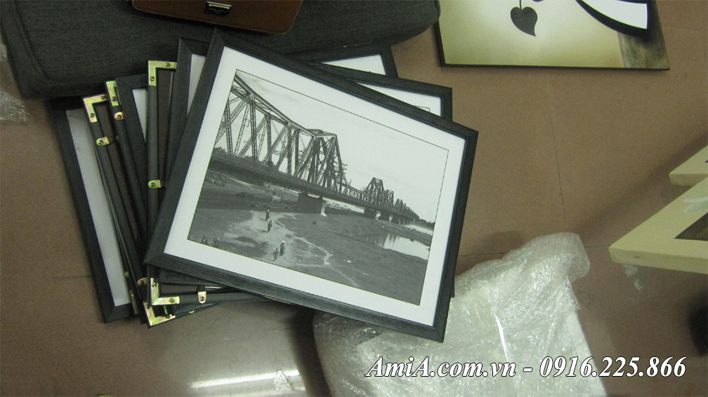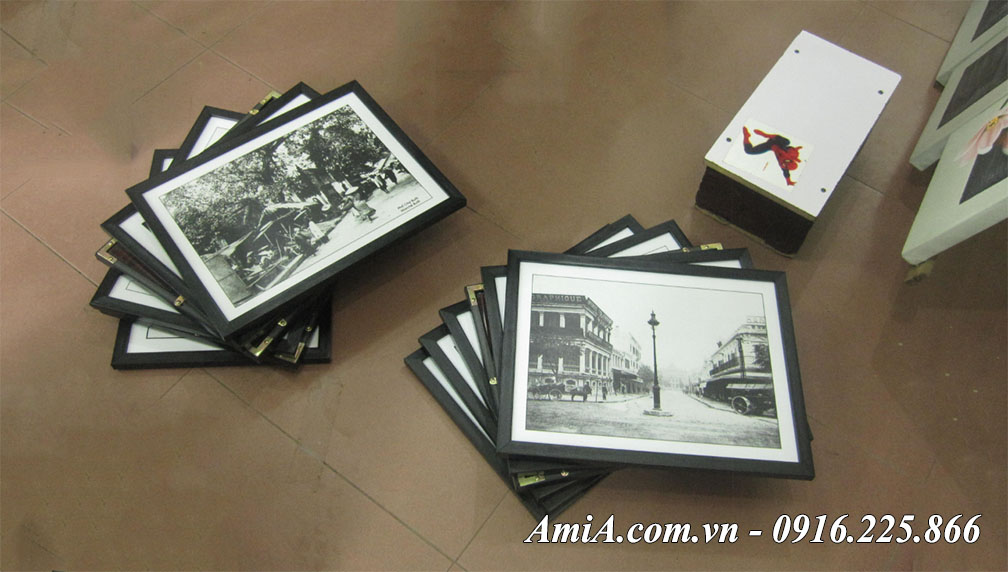 1. Hình ảnh tranh đen trắng chụp thực tế tại cửa hàng tranh AmiA 211 Vũ Tông Phan trước khi giao cho khách:
